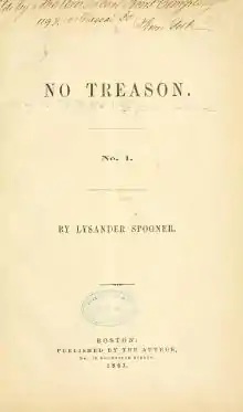 İhanet Yok 1867 yılında yazılan üç makaleden oluşan bir çalışma. 1. makale ve 2. makale "Anayasa"olarak bilinir, 3. ise "Yetkisizliğin Anayasası" dır. Makalelerin yazarı Lysander Spooner hukuk eğitiminden geçmiş köleliğe karşı olan radikal bir anarşistti. Bu makaleleri Amerikan devleti ve anayasası ile memnuniyetsizliğini anlatmak niyetiyle yazdi. Lysander Spooner doğal hukuğu "adalet bilimi" diye tarif etmiş ve bunu da "tüm insan hakların bilimi: tüm insanların insani ve emlak hakları; tüm insanların yaşam, istiklal ve huzur aramak hakları" diye belirlemiştir.[1] Spooner'in inandığı "adalet veya doğal hukuk diye bir temel varsa, bu temel hukuk her insanın doğuştan sahip olduğu hakları belirler."[1]