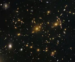 Abell 370 görüntüsünde ışık, uzamış yaylar biçiminde görünmektedir. Aslında bu, kümenin daha uzaktaki nesnelere kütleçekimsel merceklenme etkisinin neden olduğu, bir nevi serap olayından başka bir şey değildir.[3]