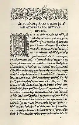 Matbaanın ilk büyük başarısı, Aristoteles'in beş ciltlik bir folyo baskısı oldu. [4] Manutius, Aristo baskısının ilk cildini 1495'te başlattı. Dört ek cilt 1497 ve 1498 yıllarında birlikte yayınlandı [5] Aldine Press Aristophanes'in dokuz komedisini 1498 yılında bastı. 1501'de Pietro Bembo tarafından düzenlenen Petrarca'ın şiirlerini bastı. Yunan yazmalarını düzenlemenin yanısıra, Manutius Floransa, Roma ve Milano'da yayınlanan metinleri düzeltti, geliştirdi ve yayınladı.