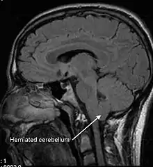 Arnold-Chiari malformasyonu olarak bilinir (bkz. Arnold-Chiari malformasyonu)