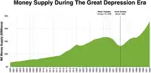Milton Friedman ve Anna Schwartz, 1930 sonbaharında banka mevduatlarının ve bankaların doğrudan para arzında bir azalmaya neden olan ekonomiyi daraltmasına yol açan kredileri tasfiye etmeye zorlayan sinir biriktiricileri tarafından bankalardan düzenli olarak çekilmelerinden ("istifleme") esinlendiklerini savundu.[12] Banka işlemleri önümüzdeki birkaç yıl boyunca ABD'yi rahatsız etmeye devam etti. Şehir çapındaki koşular arasında Boston (Aralık 1931), Chicago (Haziran 1931 ve Haziran 1932), Toledo (Haziran 1931) ve St.Louis (Ocak 1933) bulunur.[13] Depresyon sırasında uygulamaya konan kurumlar, ABD ticari bankalarında 1930'lardan bu yana,[14] 1980'lerin ve 1990'ların ABD tasarrufları ve kredi krizi gibi koşullar altında bile kaçmasını engellemiştir.[15]