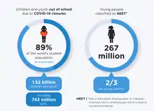 - "290 million students out of school due to COVID-19: UNESCO releases first global numbers and mobilizes response". UNESCO. 4 Mart 2020. 5 Mart 2020 tarihinde kaynağından arşivlendi. Erişim tarihi: 6 Mart 2020.