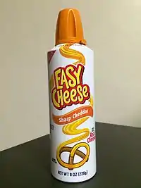 Easy Cheese, Mondelēz International tarafından dağıtılan işlenmiş peynir yayma ürününün ticari markasıdır. Ayrıca bir kutu içinde aerosol peyniri, sprey peynir veya basitçe peynir olarak da adlandırılır ve sıkma peynirine (1970'lerden sıkıştırılabilir bir plastik tüp içinde paketlenmiş yarı katı peynir ürünleri) benzer.[1] Marka, peynirin ekstrüde edildiği düz, esnek bir meme ortaya çıkaran plastik bir kapakla kaplı hava ile doldurulmuş bir metal kutu içinde paketlenir.[2]
