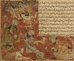 ![]() Amr bin Hişam'ın Bedir Muharebesi'nde ölümü (Tarihname, Belamî) | |
