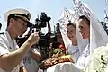 ABD Deniz subayı, Rusya'nın Vladivostok kentine vardıktan sonra ekmek ve tuz törenine katılıyor, 3 Temmuz 2006.