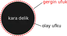 Kara delik üzerinde gergin ufkun ve olay ufkunun konumları.
