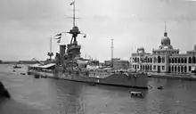 Mart 1919'da Iron Duke, Akdeniz Filosuna transfer edildi ve burada tekrar amiral gemisi olarak görev yaptı. Gemi, Müttefiklerin Rus İç Savaşı'na müdahalesine katılmak için Nisan ayında Karadeniz'e gitti.[28] Yoldayken, gemi 7 Nisan'da İstanbul'da durdu.[29] Burada Iron Duke, Bolşevikler tarafından kullanılabilecek savaş gemilerinin ve diğer malzemelerin imha edilmesine destek oldu.[30] 12 Mayıs'ta Iron Duke İstanbul'dan İzmir'e gitti ve orada şehrin dış kalelerinden bazılarını ele geçirmek için bir işgal birliği indirdi.[31] Karadeniz'e döndü ve burada Akdeniz'e döndüğü Haziran'a kadar kaldı.
