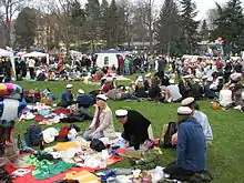 Kaivopuisto parkında Vappu gününde halk piknik yapıyor.