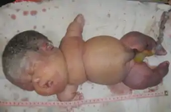 Anne-bebek Rh uyuşmazlığı nedeniyle meydana gelen alyuvarlarda aşırı parçalanma (hemoliz) tablosuna Erythroblastosis fetalis adı verilir. Hemolize neden olan Rh D (%90) antijeni ve ABO sistemidir. Olguların pek azında Rh C ve Rh E antijenlerinin etkinliği izlenir. İlk bebekte sorun olmaz. İkinci ve sonraki gebeliklerde Rh-negatif annede Rh D antijenine karşı beliren antikorlar plasenta aracılığıyla ulaştığı Rh-pozitif fetüsü etkiler, hemoliz (Erythroblastosis fetalis) olgusu başlar. Çok hafif bir hemoliz tablosundan öldürücü anemiye dek farklı aşamalara özgü bulgular saptanabilir.[1][2][3]