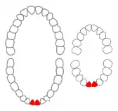 ![]() Süt ve kalıcı mandibular orta kesici dişler kırmızı ile işaretlenmiştir. | |
