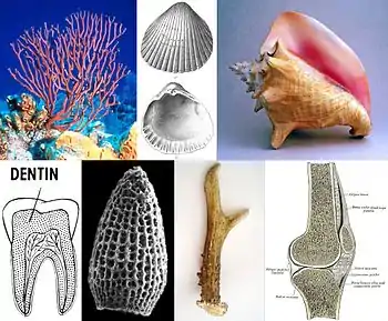 Mineralize dokular, yumuşak protein ağlarında ve dokularındaki (organik kısım) minerallerin (inorganik kısım) varlığı sayesinde sertlik, düşük ağırlık, mukavemeti ve dayanıklılık özellikleri gösterir.[1][2] Biyolojik süreçlerle üretilen yaklaşık 60 farklı mineral vardır, ancak en yaygın olanları yumuşakça kabuklarında bulunan kalsiyum karbonat ve dişlerde ve kemiklerde bulunan hidroksiapatittir. Bu dokuların mineral içeriğinin onları kırılgan yapabileceği düşünülebilir ancak çalışmalar mineralize dokuların içerdikleri minerallerden 1.000 ila 10.000 kat daha dayanıklı olduğunu göstermiştir.[5] Bunun altında yatan gücün sırrı, dokunun organize bir şekilde katmanlanmasıdır. Bu katmanlanma sayesinde, yükler ve gerilmeler, makrodan mikroya ve mikrodan nanoya kadar çeşitli uzunluk ölçekleri boyunca aktarılır, bu da enerjinin dağıtılmasını sağlar. Bu nedenle, bu ölçekler veya hiyerarşik yapılar kademe kademe hasarı dağıtabilir ve çatlama önlenebilir. Kapsamlı araştırmalarca iki tip biyolojik doku incelenmiştir, yumuşakça kabuklarında bulunan sedef ve kemik. Her ikisi de yüksek performanslı doğal kompozitlerdir.[6][7][8][9] Bu dokuları karakterize etmek için nanoindentasyon ve atomik kuvvet mikroskopisi gibi birçok mekanik teknik ve görüntüleme tekniği kullanılır.[10][11] Henüz herhangi bir insan yapımı seramik kompozit, biyolojik sert dokuların verimlilik derecesine ulaşamamasına rağmen umut verici bazı yeni teknikler şu anda geliştirilmektedir. Tüm mineralize dokular normal fizyolojik süreçlerle gelişmez ve organizmaya faydalı değildir. Örneğin, böbrek taşları patolojik süreçlerle gelişmiş mineralize dokular içerir. Bu nedenle, biyomineralizasyon bu hastalıkların nasıl ortaya çıktığını anlamak için önemli bir süreçtir.[3]