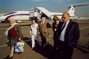 Maurice Druon ve Viktor Çernomırdin Orenburg Tsentralny Havalimanı'nda, 2003 yıl.