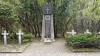 Kentin Polonya Seferi'nden önce büyük bir Yahudi nüfusu vardı. 1940'ta Alman işgal makamları, Yahudi nüfusunu azaltmak ve onları sömürmek amacıyla amacıyla Pruszków'da bir Yahudi gettosu kurdu.[3] Birçoğu Treblinka imha kampına gönderildi ve öldürüldü.[4][5][6][7]