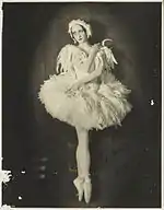 ![]() Rus baş balerina Olg Spessivtseva, Kuğu Gölü balesinde "Odette" rolünde, 1934 | |