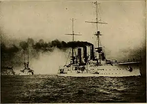 ![]() Prinz Adalbert sınıfı gemilerden biri, bir dizi gemiye liderlik ederken | |