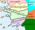 Saruhanoğulları Beyliği Anadolu Selçuklu Devleti'nin çökmesi ve dağılmasıyla başlayan Anadolu Beylikleri döneminde, Batı Anadolu’da Manisa ve çevresinde kurulmuş bir beyliktir. Ağırlıklı olarak[ komşu Aydınoğulları beyliği ile ittifak içinde Doğu Roma İmparatorluğu ile savaşmıştır. Beylik ilk kez 1390'da Yıldırım Bayezid tarafından, kesin olarak da I. Mehmed tarafından 1410'da Beyliğin son Saruhan beyi Hızır Bey'den alınmasıyla Osmanlı Devleti topraklarına katılmıştır. | ![]() | ||