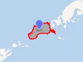 ![]() Unimak Adası'nın uzaydan görünümü, Eylül1992 | |